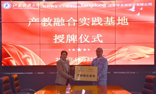为深化校企协同育人模式,以党建引领产学研深度融合,2025 年 10 月 22 日,材料学院金属材料系教工党支部与江苏丰东热技术有限公司党委在企业 B 厂房一楼会议室成功举办党建共建暨产教融合基地授牌仪式。此次活动标志着双方在党建引领下,迈向产学研教深度融合的新阶段。