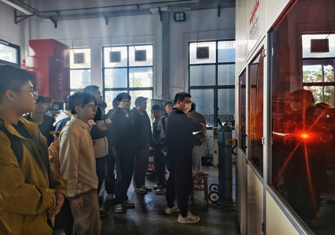 材料成型专业新生在黄忠富、朱杰、邵勇三位老师带领下,开展多维度实验室探索。拉伸力学性能实验室里,黄老师详解拉伸试验机原理、操作流程及在材料强度测试中的应用;在热处理实验室中以菜刀为例,科普热处理炉功能及相关工艺对材料性能的改善;焊接机器人实验室里,朱老师向大家阐述了焊接技术的应用价值,并结合搅拌摩擦焊实验室通过铝合金样品讲解绿色焊接,展示金属 3D 打印产品;邵老师则趁热打铁带领新生走进 3D 打印与模具拆装实验室,观摩实物、介绍冲压模具及工艺,分享专业赛事信息,助力新生拓宽专业视野。