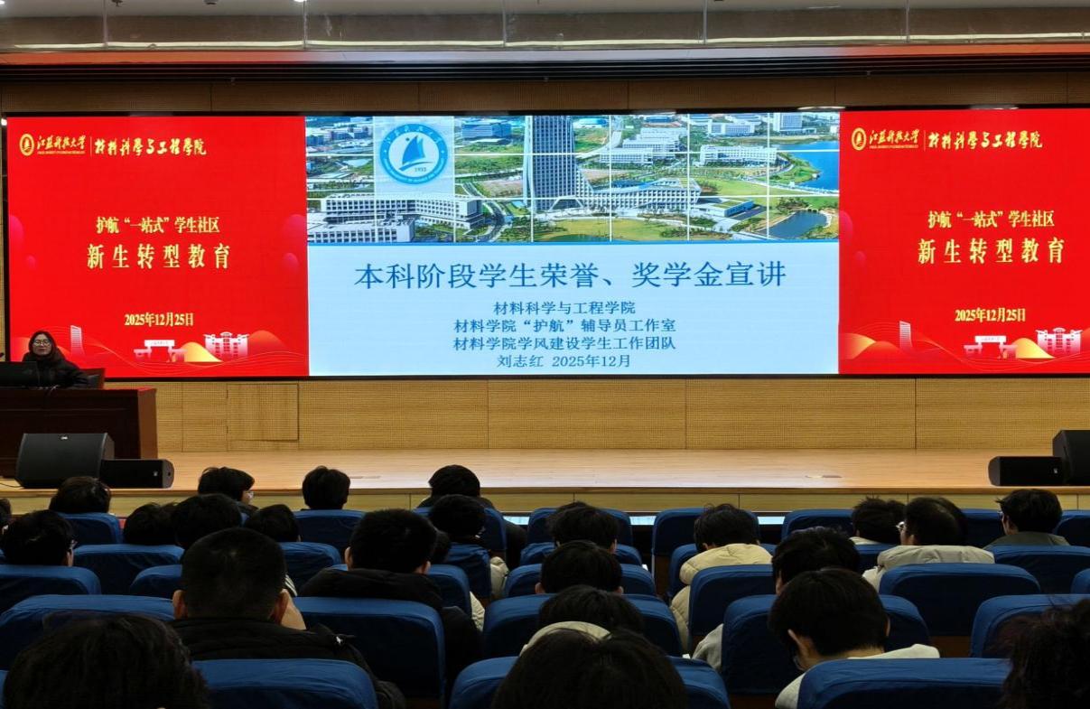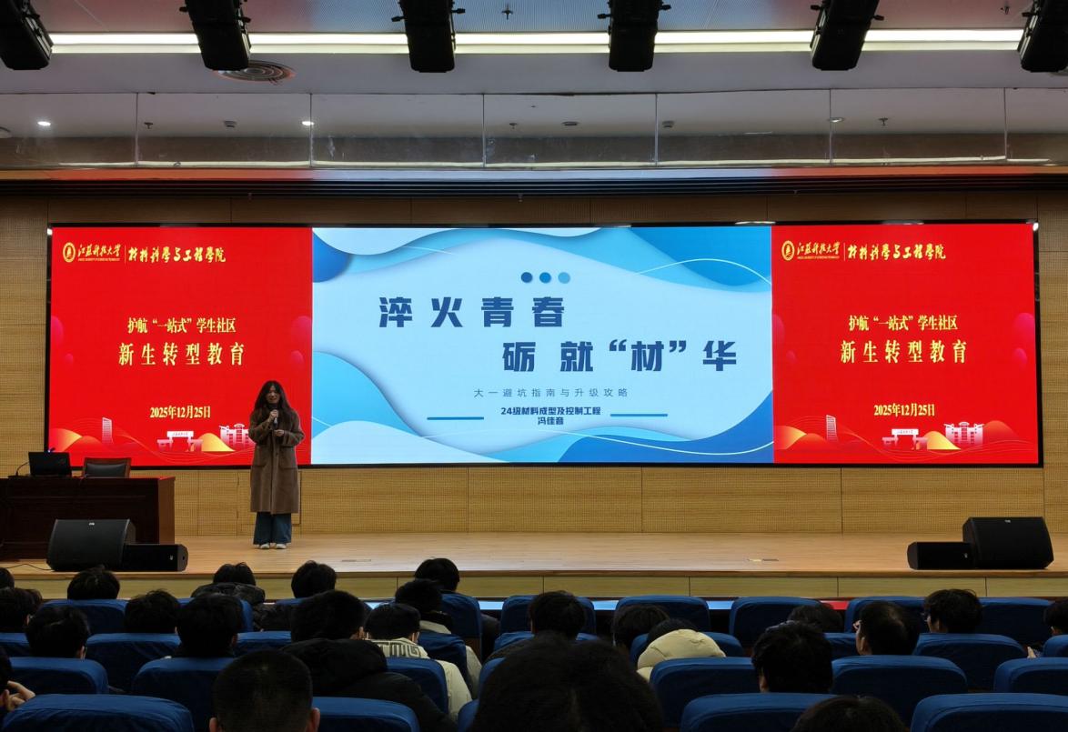为扎实推进学风建设,引导2025级新生明确学业目标、科学规划大学生涯,12月25日,材料学院在“护航”一站式学生社区开展学风专题讲座暨学长学姐经验分享会。辅导员刘志红、涂艺凡,24级研究生、24级材成专业代表和25级全体本科生参加活动。